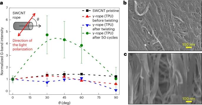 图 5:通过扭转使单壁碳纳米管在 y 形绳 (TPU) 中重新定向